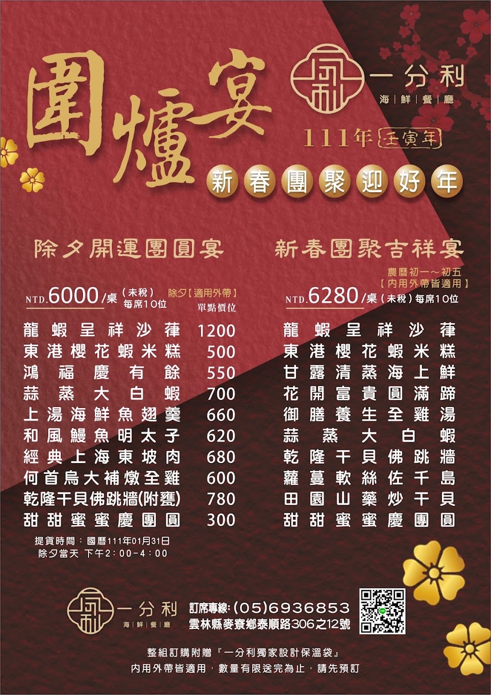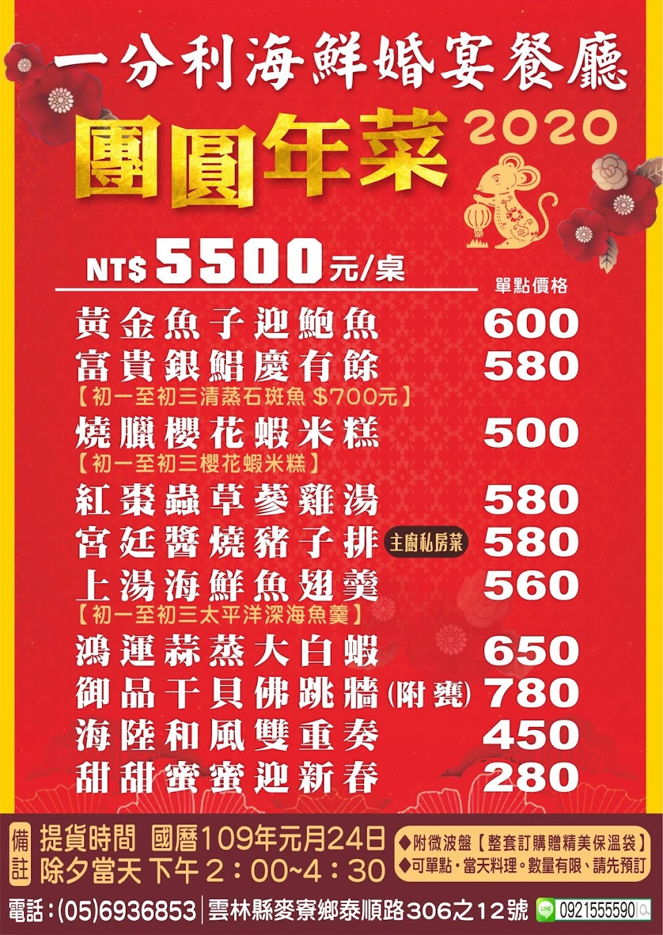 2024最新在地推薦餐廳的菜單_一分利海鮮/喜宴餐廳的菜單、圖片
