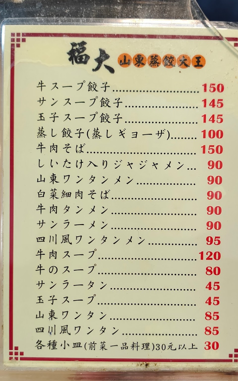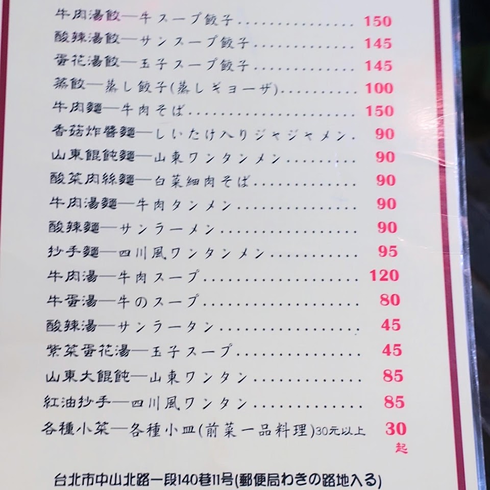 ?蒸餃 $95|香菇炸醬麵 $85|酸辣湯 $45
