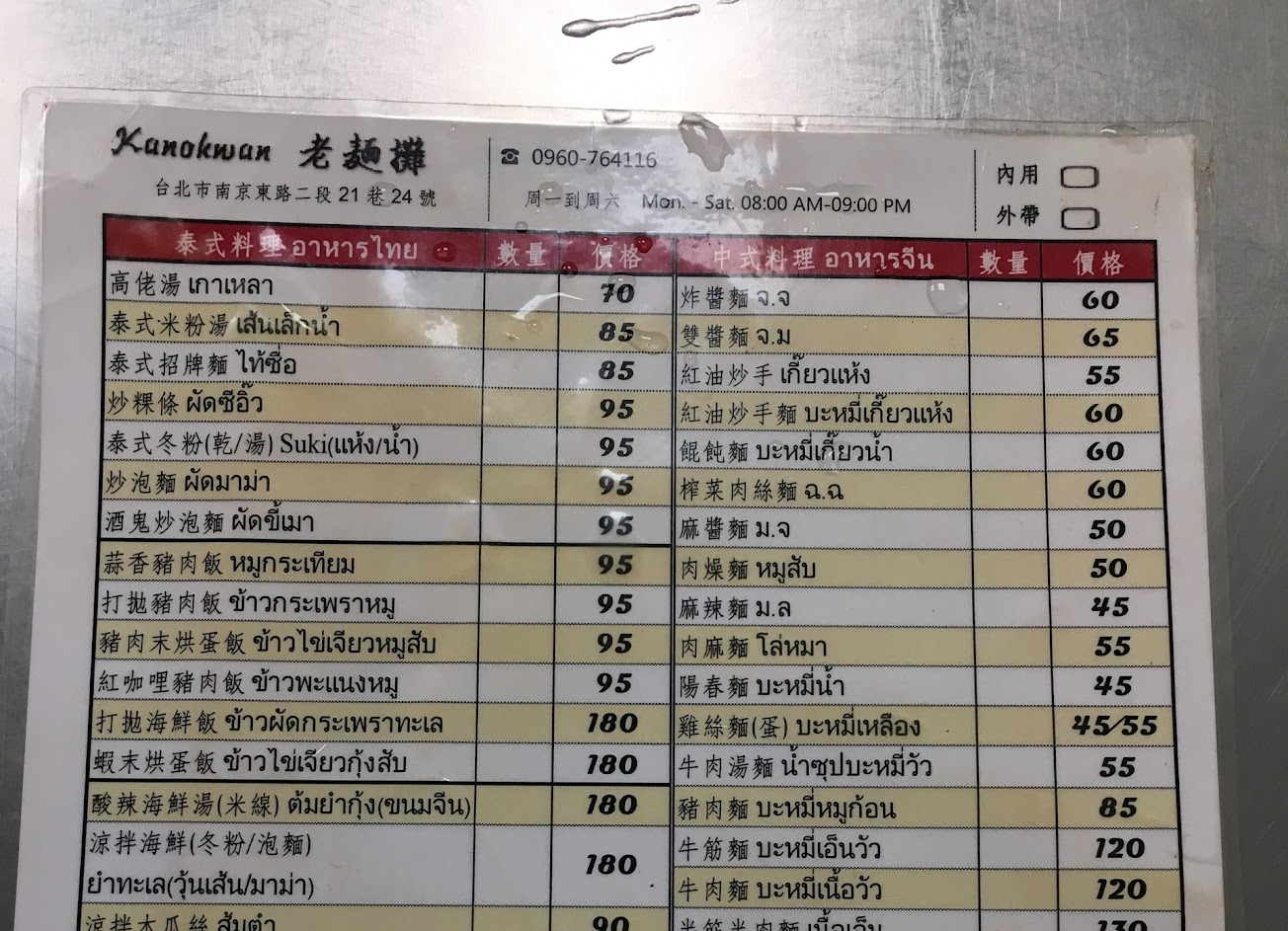 跟朋友在假日下午五點左右避開人潮前來用餐,雖然老麵攤提供中式與泰式餐點,但大部分的人都是為了一嚐泰式料理前來。