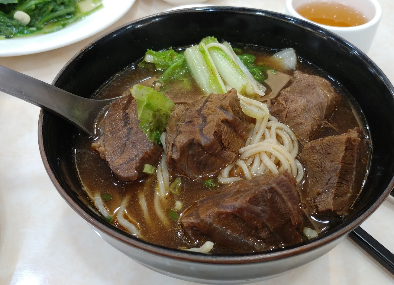 推薦這裡的蒜蓉醬油蛤蜊牛肉麵。