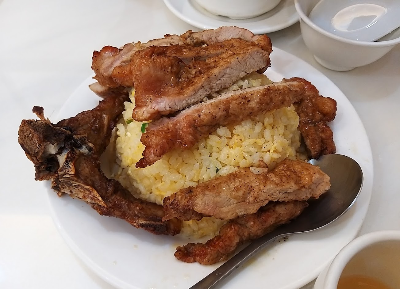 排骨蛋炒飯的排骨非常硬很失敗,不過蛋炒飯很乾爽,調味恰到好處,