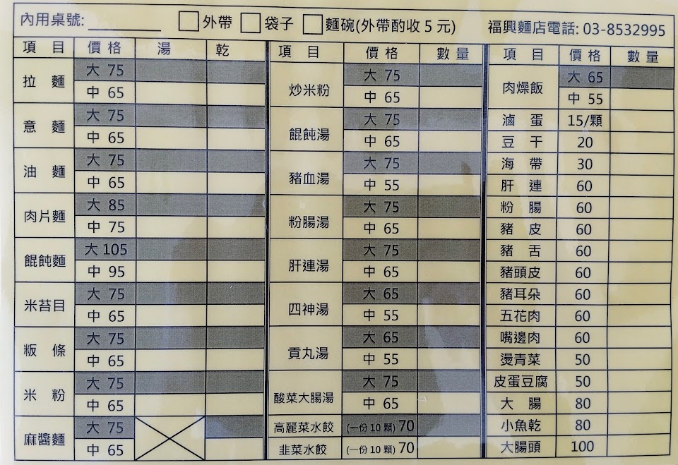 2024最新在地推薦餐廳的菜單_福興麵店的菜單、圖片