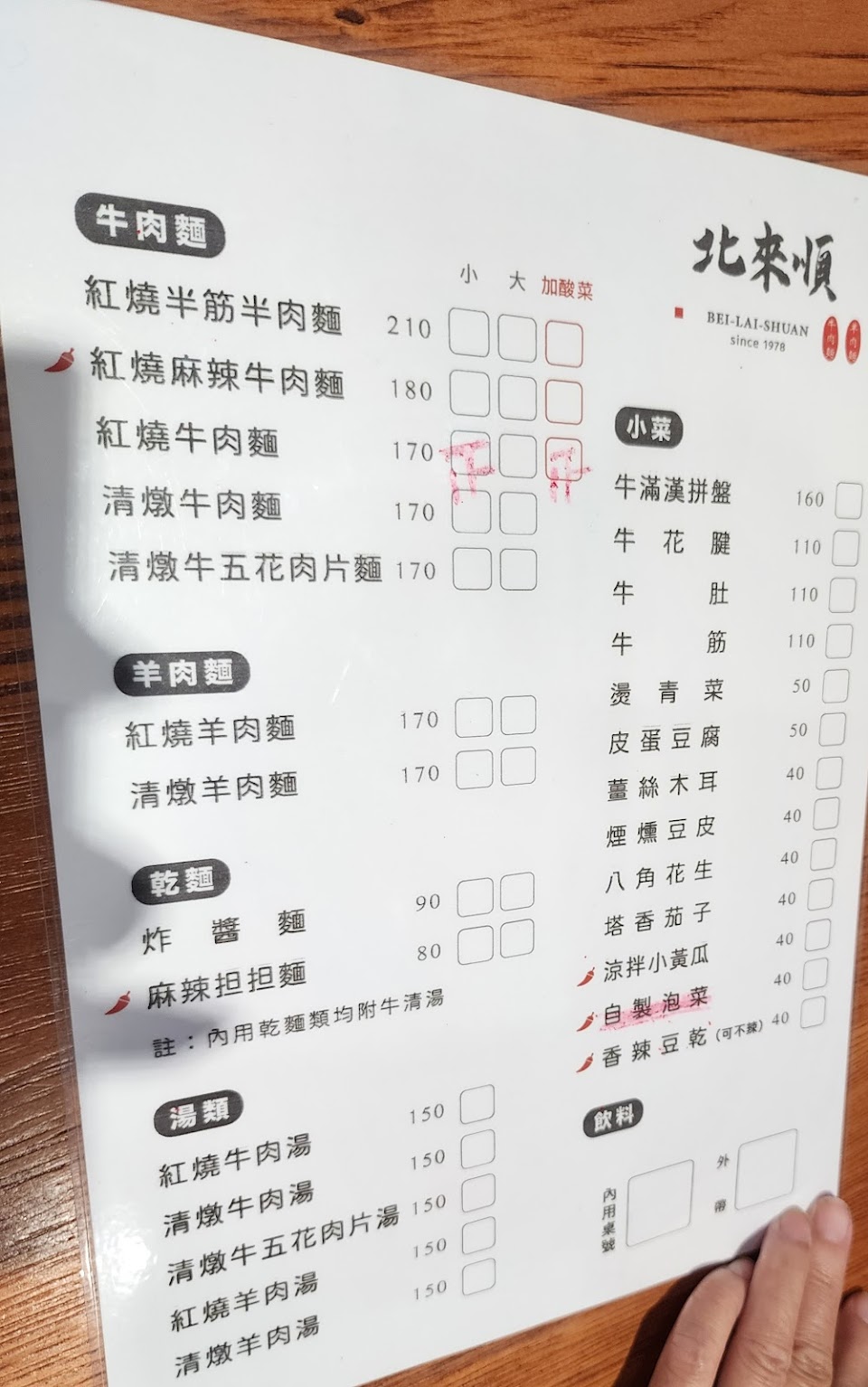北來順老闆和老闆娘很親切,他們的店很有質感也很乾淨,我首推他們家的牛肉和羊肉麵超級好吃,他們家的各式麵類都有不同的風味,他們的小菜每道的香氣都很分明沒有重疊超好的