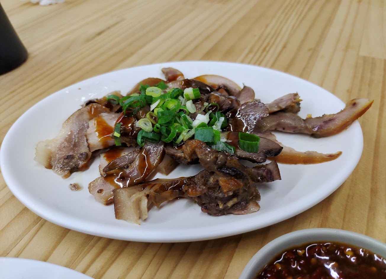 小菜由於今天到時剛好剩不多,只點了海帶跟豬舌,海帶魯的很入味,鮮味很夠,目前只有吃到這間店的海帶是這味道,平常不吃豬舌的我也可以接受,沒有任何腥味,有著淡淡煙燻味,再搭配辣椒醬,好吃~5星當之無愧!