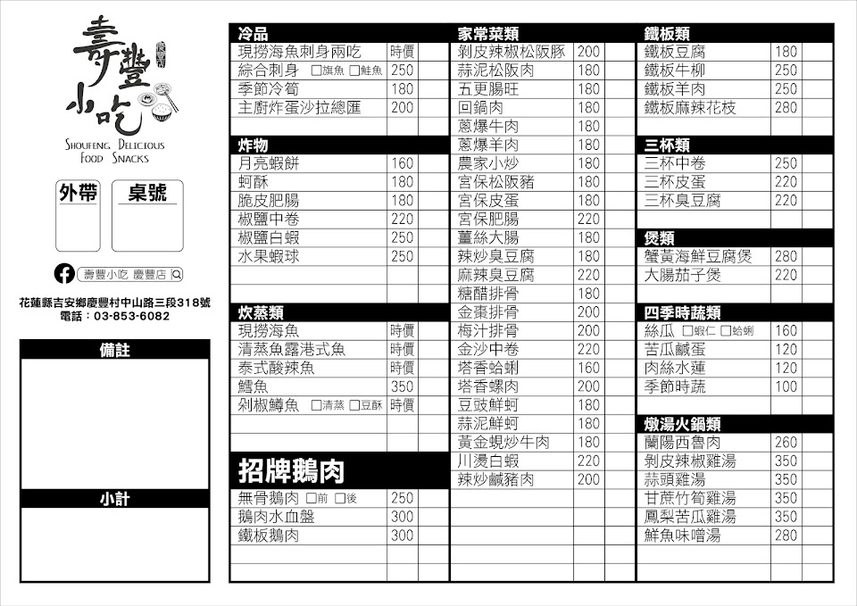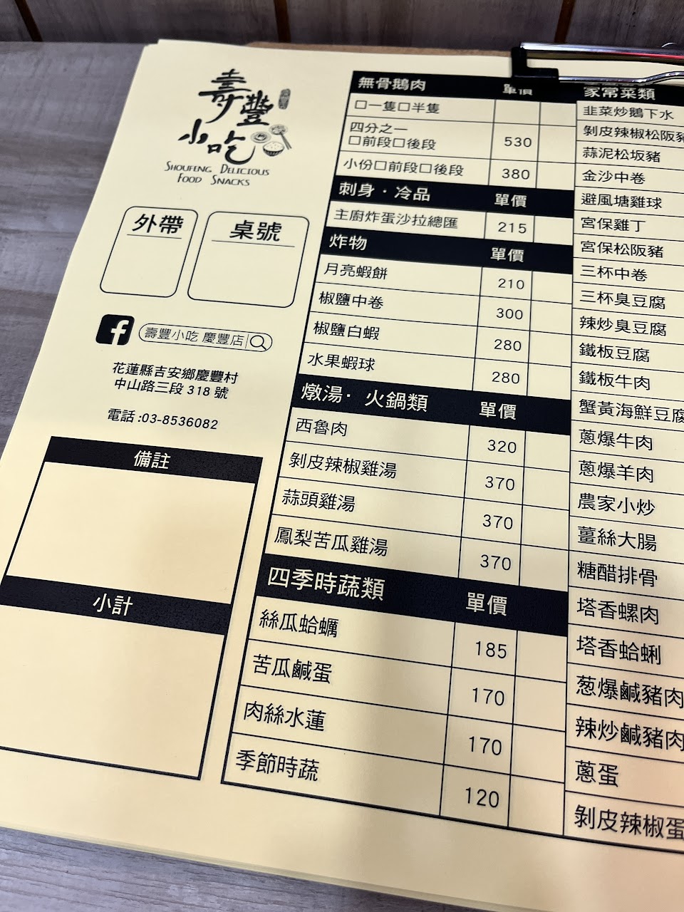 2024最新在地推薦餐廳的菜單_壽豐小吃-慶豐店的菜單、圖片