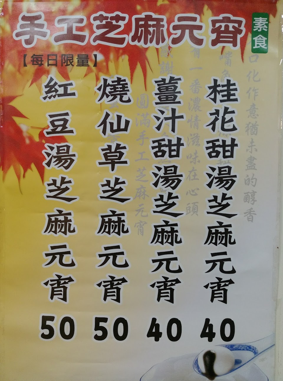 ▲薑汁甜湯芝麻湯圓50