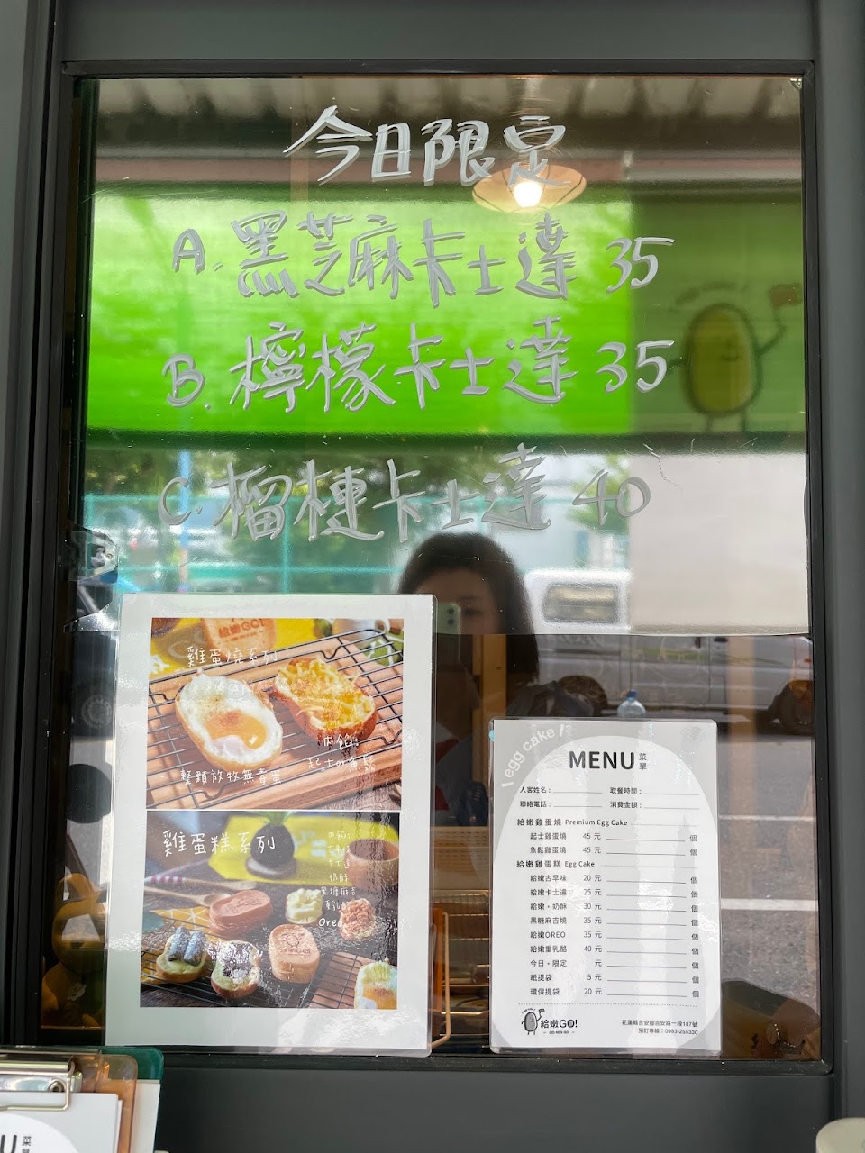 這間新開的雞蛋糕店就開在吉安一帶的人氣甜點店四分之旅旁,他們營業的時段蠻特別的,從下午2:40~5點左右,營業時間很尷尬,每次想找時間來不知道要排到什麼時後。剛好當天和朋友去吃完午餐後去取貨,回來還有一段時間想說就到附近吃個下午茶,我們大約3點左右才抵達,現場就已經有很多人了,而且還有外送訂單,當下老闆說要等至少30分鐘,我們沒有很趕時間,所以決定先去附近買飲料再回來拿。剛好等我們買完飲料回來後,我們的餐點也好了。