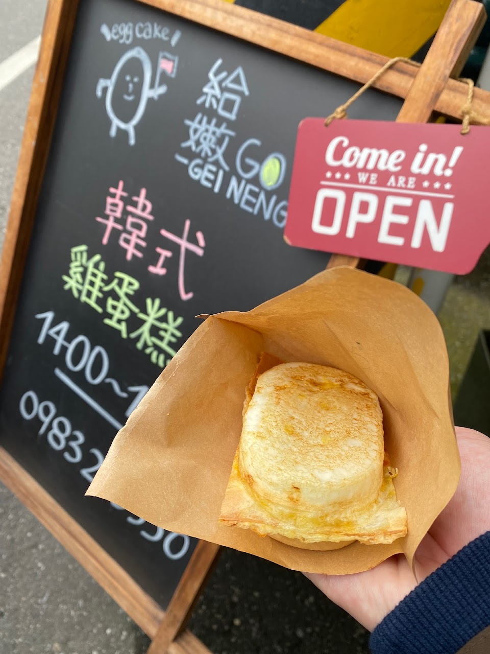 沒想到在臺灣就能吃到韓國味十足的韓國雞蛋燒?滿足,好吃好吃~如果要冷掉也很好吃的可以購買雞蛋「糕」,因為雞蛋「燒」比較適合現買立馬吃? …