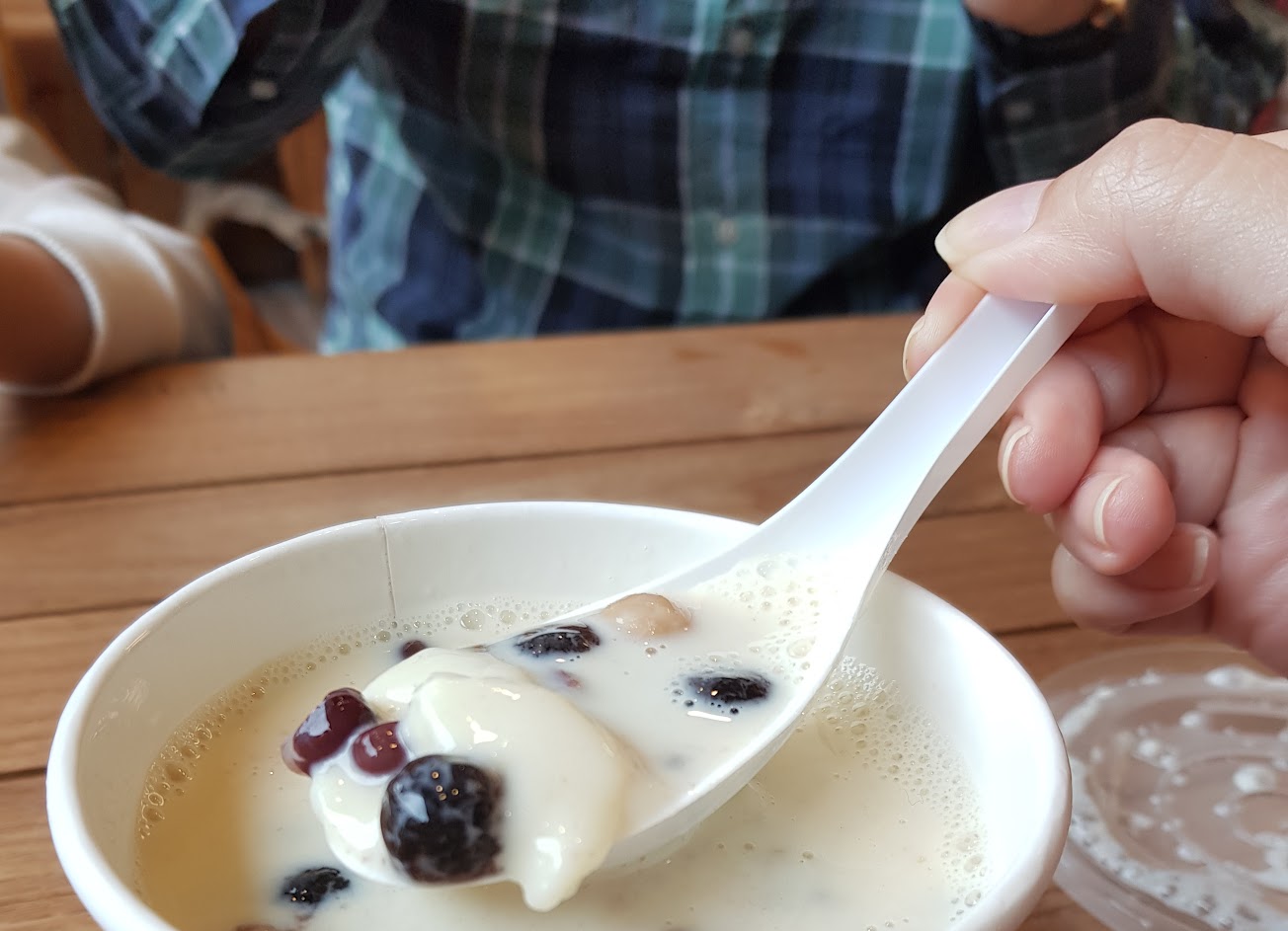 豆花口感入口即化,豆漿濃醇帶點焦香味。因為有加其他配料,平常較養生的人可以點無糖。