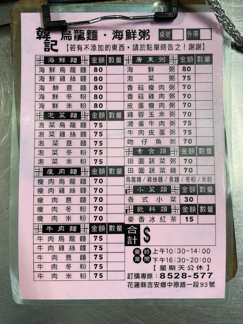 2024最新在地推薦餐廳的菜單_韓記烏龍麵海鮮粥的菜單、圖片