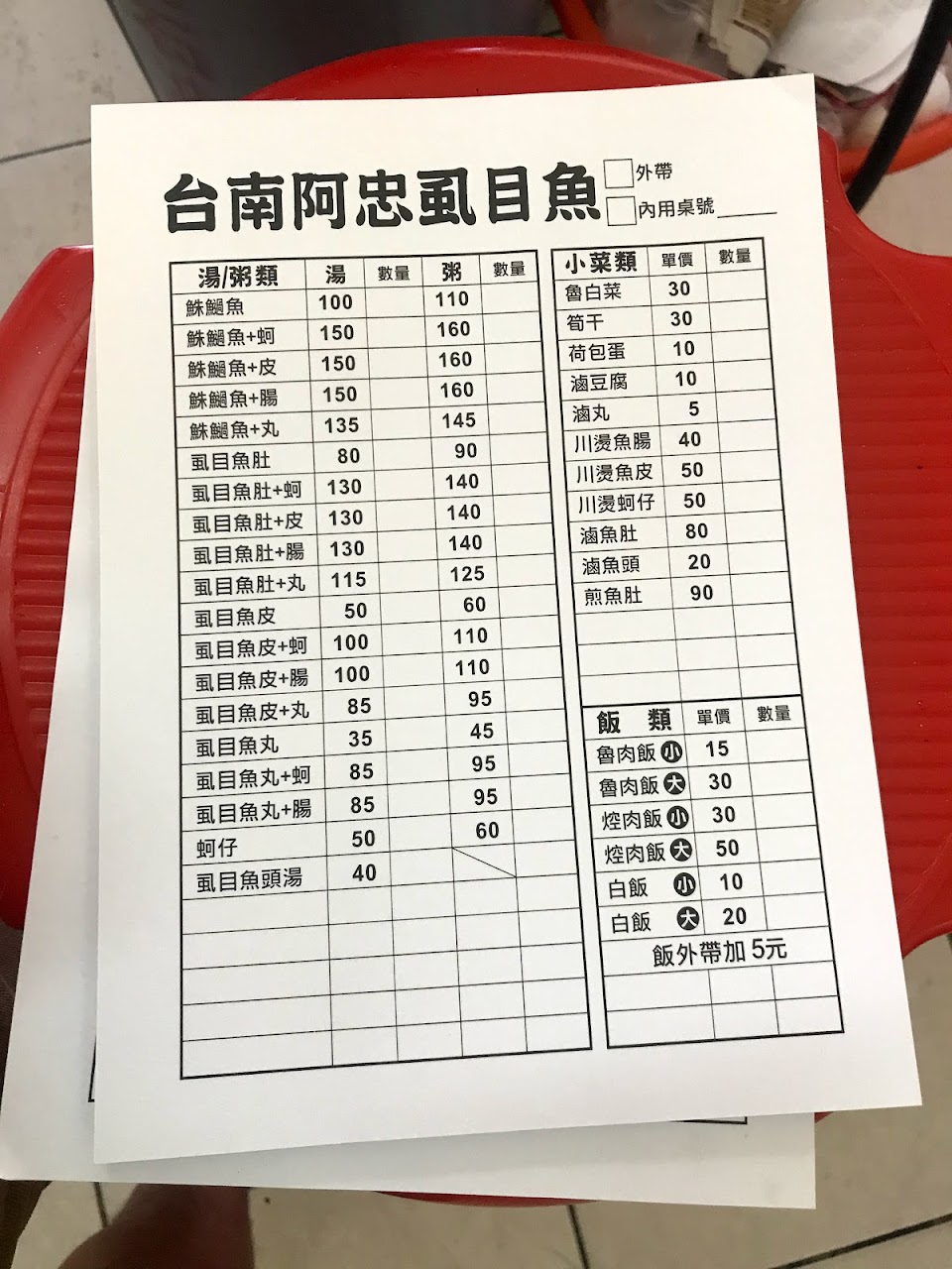 2024最新在地推薦餐廳的菜單_台南阿忠虱目魚(吉安)的菜單、圖片