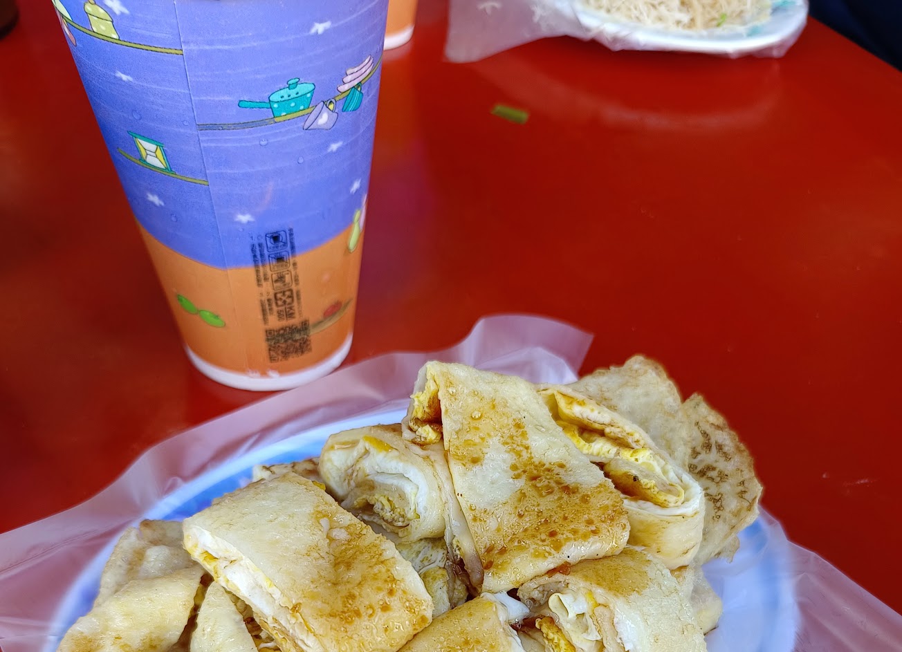 點了蛋餅 是粉漿蛋餅 有夠Q好好吃🤤 鮮奶茶也很棒 豆漿有股煙味🤣 但那應該是特點吧!