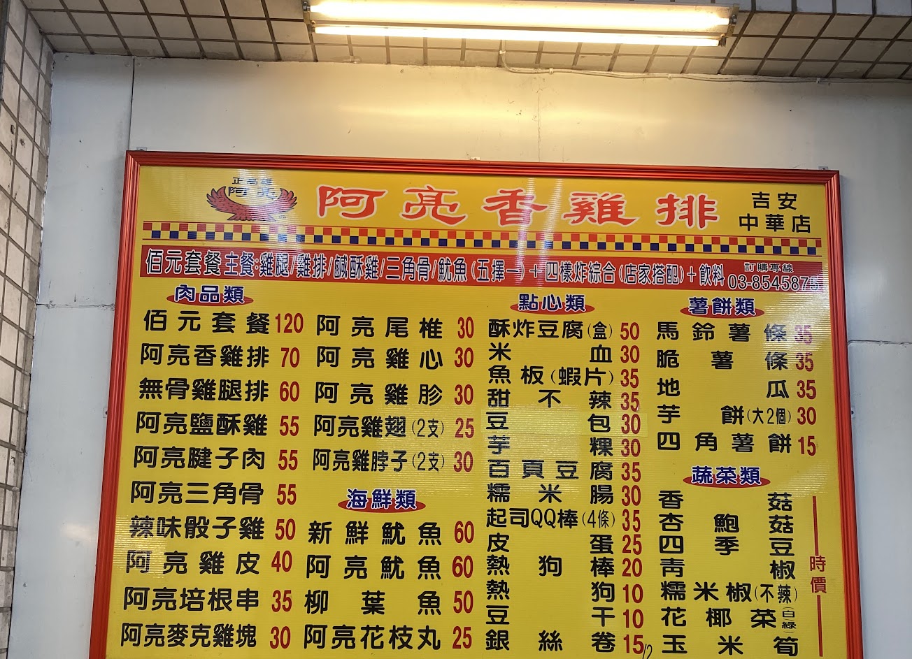 2024最新在地推薦餐廳的菜單_阿亮雞排吉安中華店的菜單、圖片