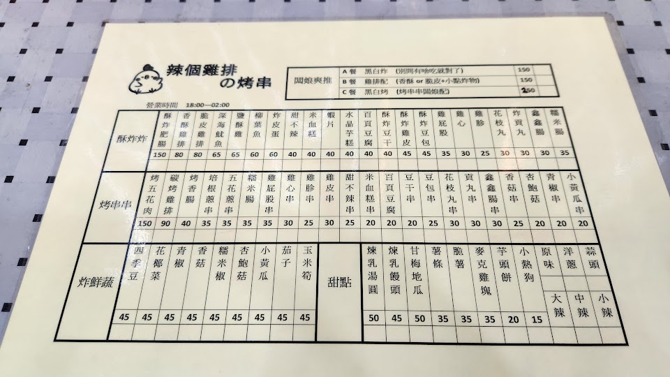 2024最新在地推薦餐廳的菜單_辣個雞排の烤串的菜單、圖片