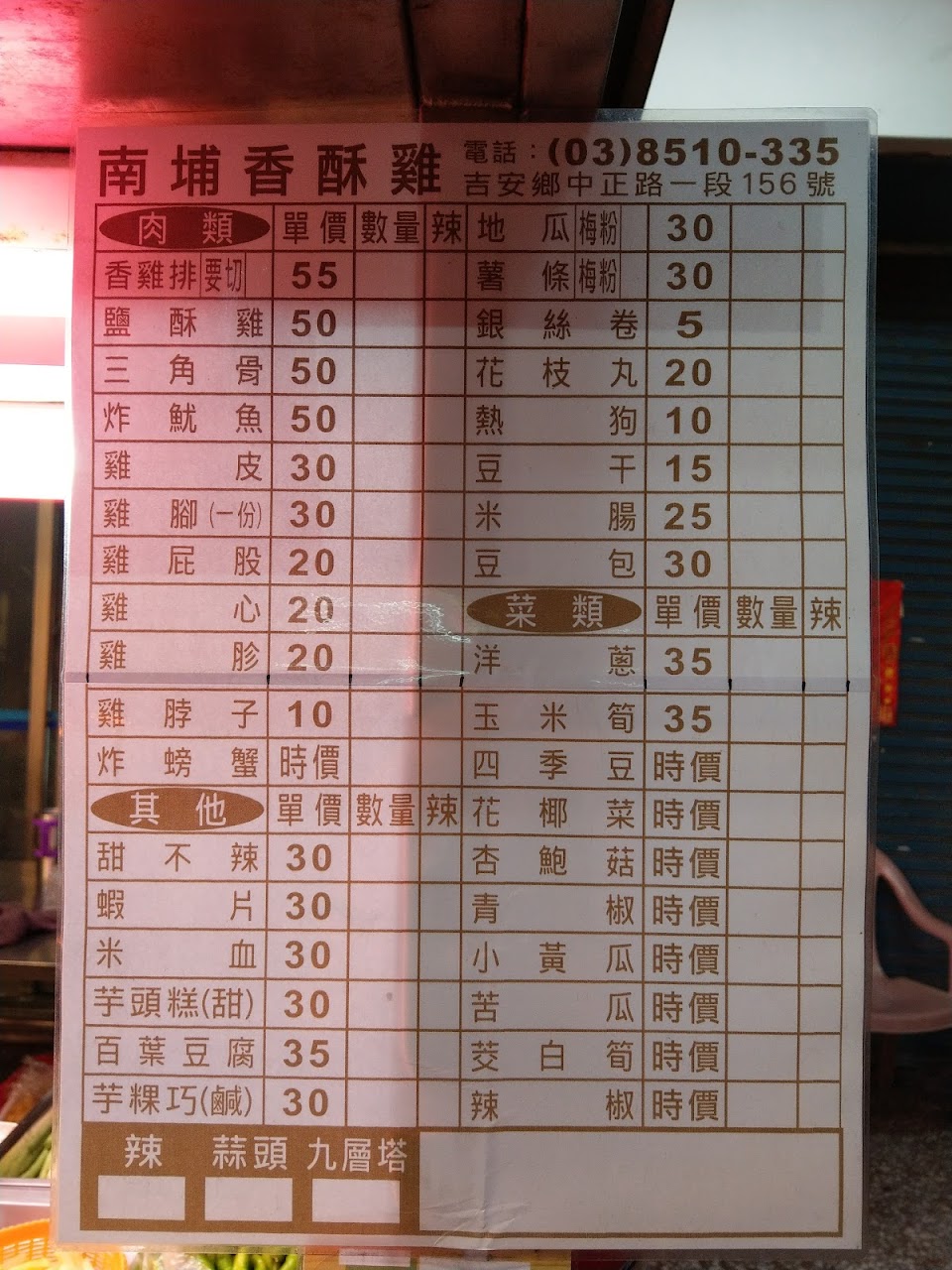 2024最新在地推薦餐廳的菜單_南埔香雞排(南埔鹽酥雞)的菜單、圖片