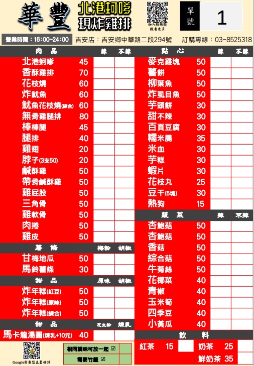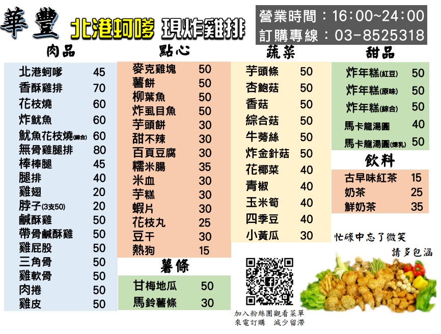 2024最新在地推薦餐廳的菜單_華豐食品-北港蚵嗲、現炸雞排(吉安店)-附 幸福米可團購取貨點·全台超商取貨的菜單、圖片