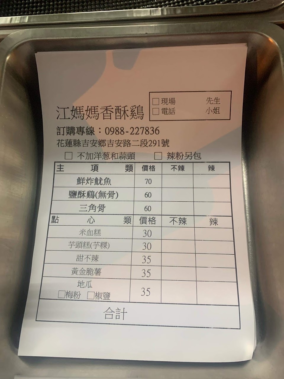 整體而言算花蓮鹹酥雞的頂,老闆健談幽默,店面絡繹不絕,要吃要早點排。