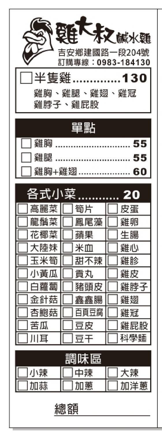 2024最新在地推薦餐廳的菜單_雞大叔鹹水雞(吉安店)的菜單、圖片