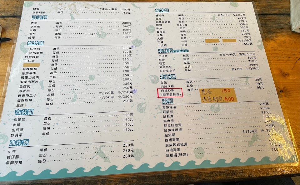2024最新在地推薦餐廳的菜單_屋銤海鮮(公休以粉專為主)的菜單、圖片