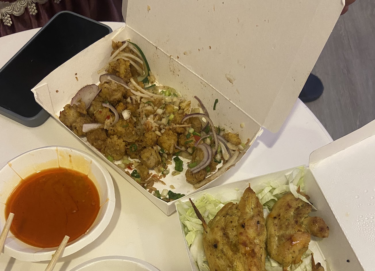 泰式烤肉值得推薦,雖然要等待比較長的時間,但是烤肉香氣十足,肉質稍乾但咬起來不會太硬,配合著軟黏的糯米一起吃,滋味真好。
