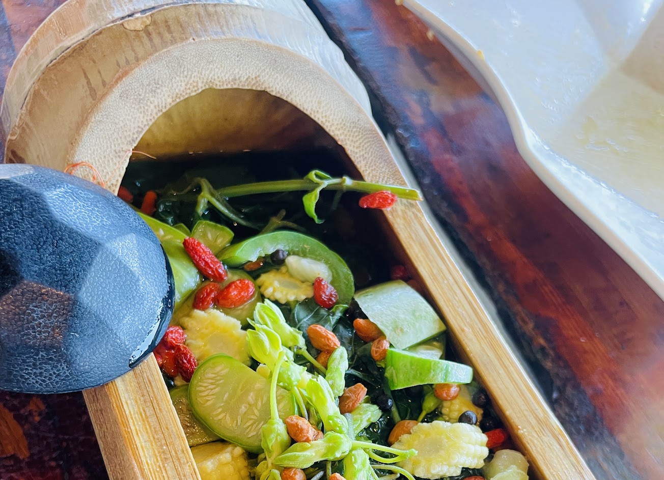 招牌海陸雙拼 竹筒蝦湯