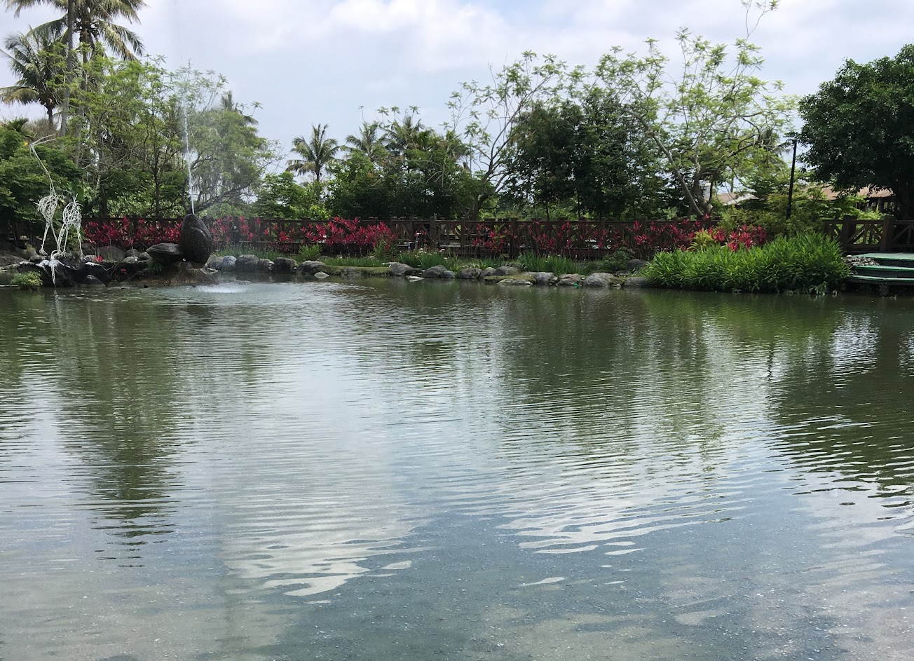 食物餐點還不錯吃,但人很多,我們只能坐在戶外用餐,沒冷氣很熱蒼蠅也不少,但園區其他地方算乾淨,花卉種植的很好,而水池中的魚甚是可愛