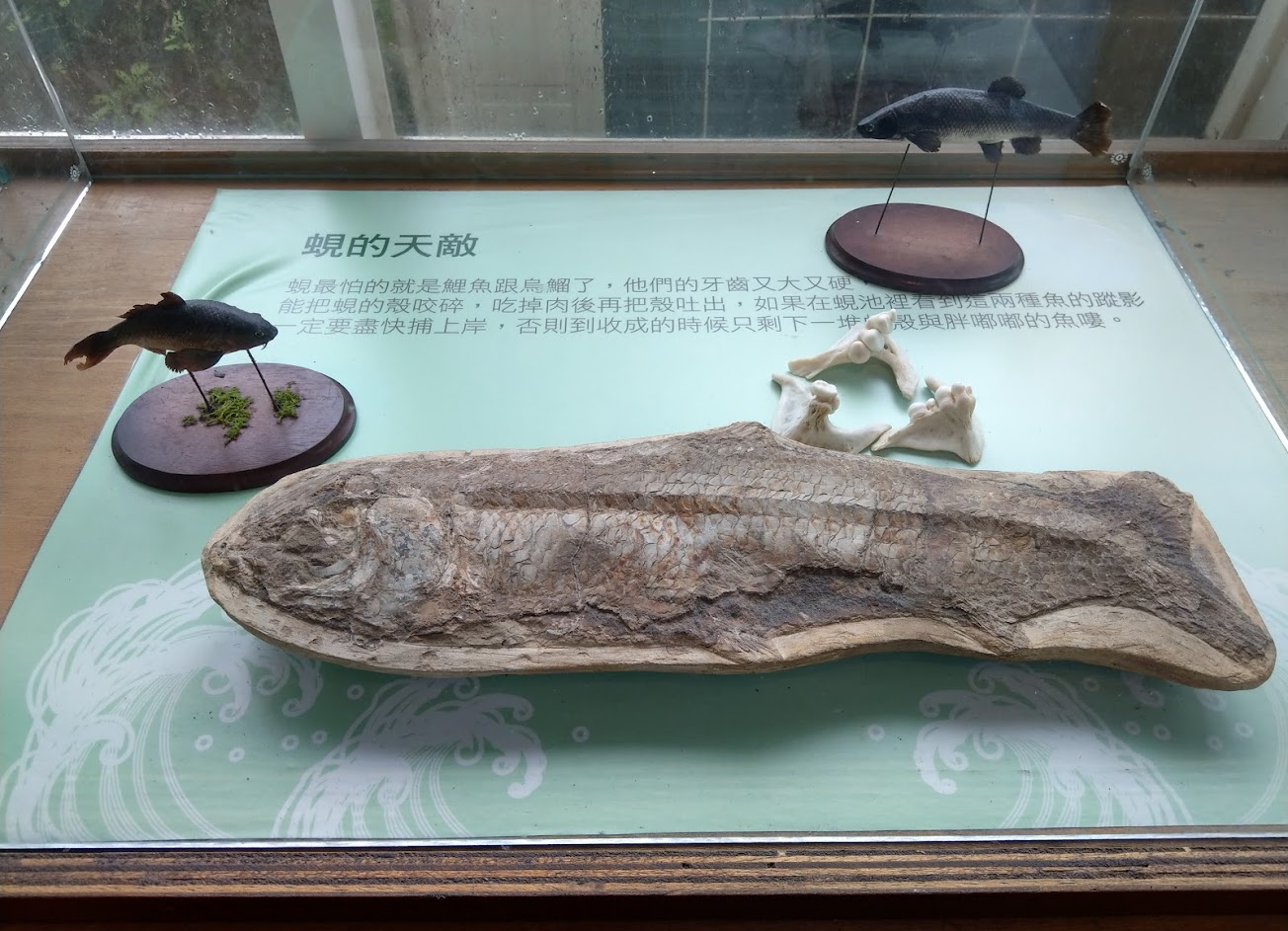 有摸蜆的體驗,各式各樣用蜆做的產品,旁邊還可以買飼料餵魚,不要問我為什麼會打買飼料餵魚,因為你看到魚就知道了!