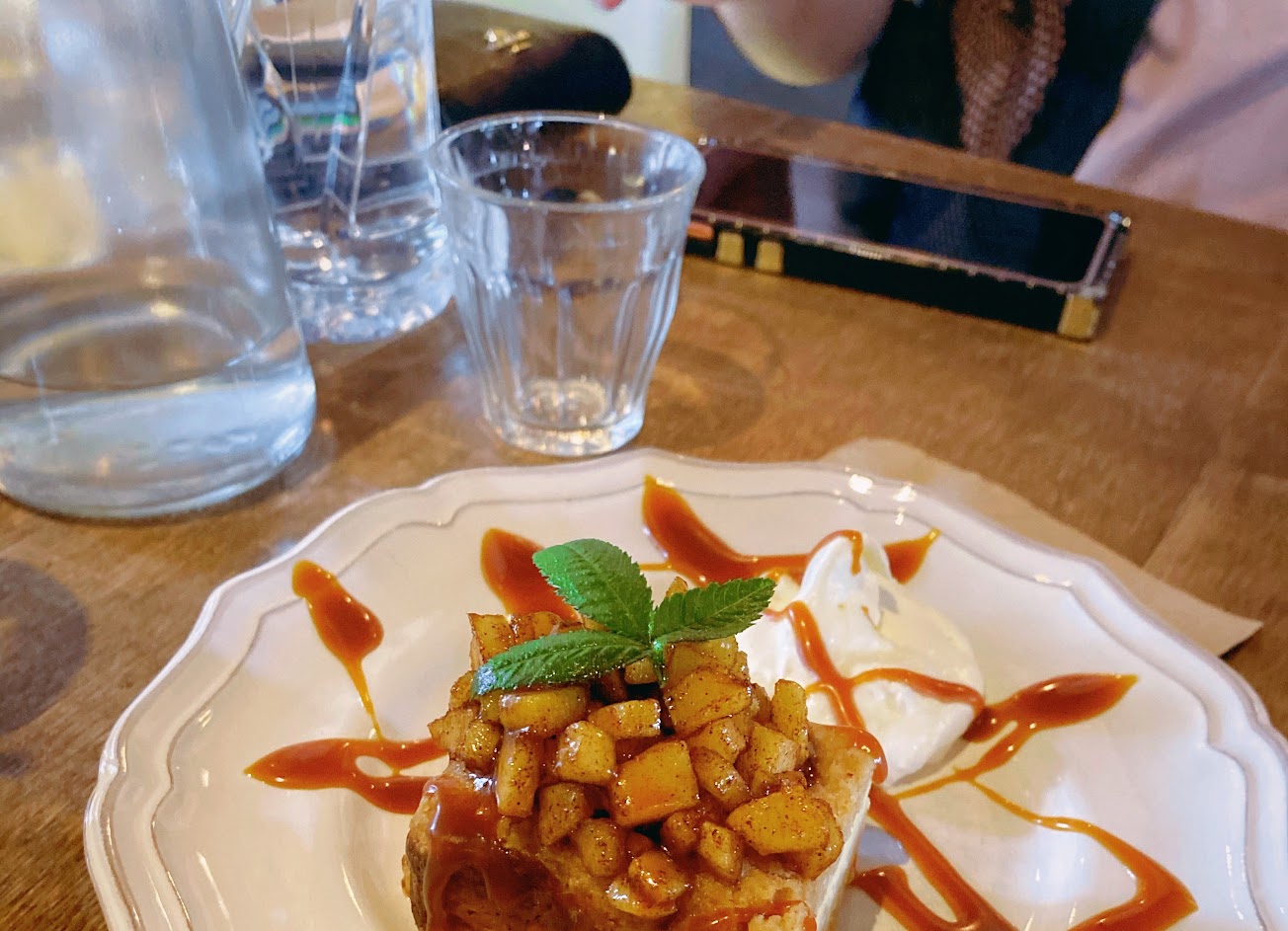 鹹食部分最有名的是咖哩飯,不過那天我們點了別的早午餐也不錯吃,麵包很香,沙拉的醬汁調得很好;出餐速度非常快(因為尖峰滿座時有用餐時間限制90分鐘從入座起算),飲料部分咖啡沒幾種,大部分都是拍照會很好看的氣泡飲和奶昔等華麗的飲料,和朋友一人點了美式咖啡一人點了有冰淇淋和咖啡凍的飲料,都覺得非常普通。
