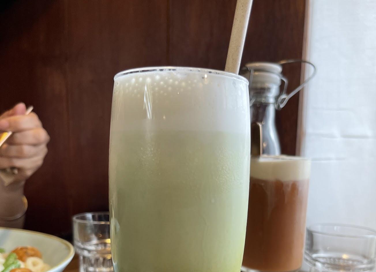 飲品點了抹茶牛奶以及提拉米克。抹茶牛奶中規中矩,偏甜了一些。