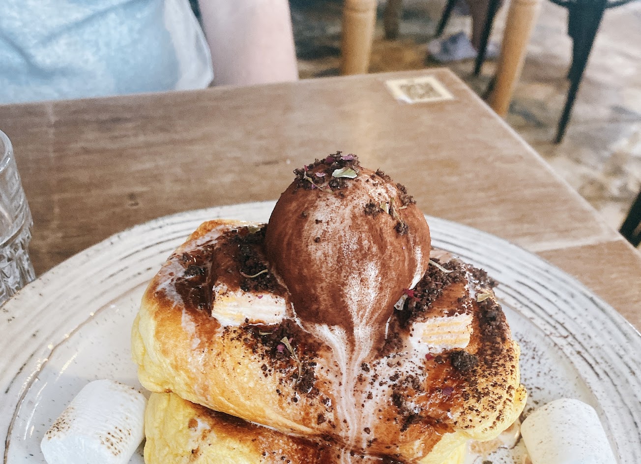 最讓人驚艷的是舒芙蕾鬆餅、點餐時先點了焦糖香草口味一吃驚為天人