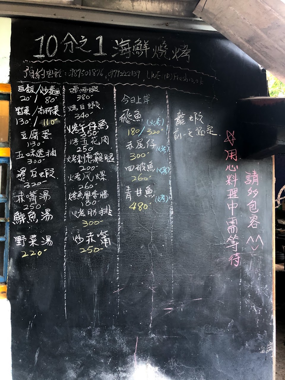 一邊欣賞海景,一邊吃著晚餐很愜意,食物美味,烤魚,燙蝦超好吃,老闆也很奈斯,位置不多要早一點去,很快就客滿了