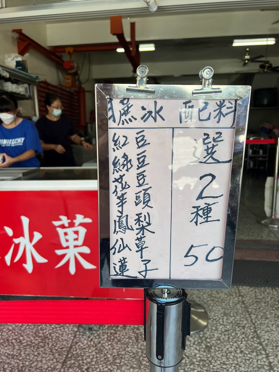 芋泥、蓮子、花豆 都非常好吃,仙草、綠豆、紅豆也很好吃。(2023)