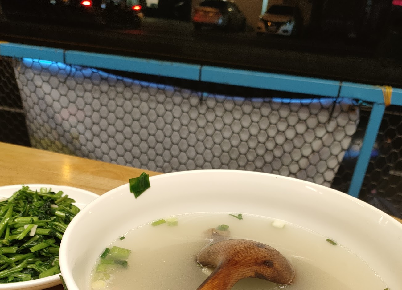 別小看這盤青菜, 廚師炒的既清翠又好吃有鍋香味。白蝦肥美用洋蔥、蒜頭簡單料理,反而蝦肉更顯甜味。湯雖然是馬頭魚的骨架煮的但是湯鮮的到像整隻魚在湯裡游,哈哈哈最重要的事是物美價廉,這一大碗才200?250~