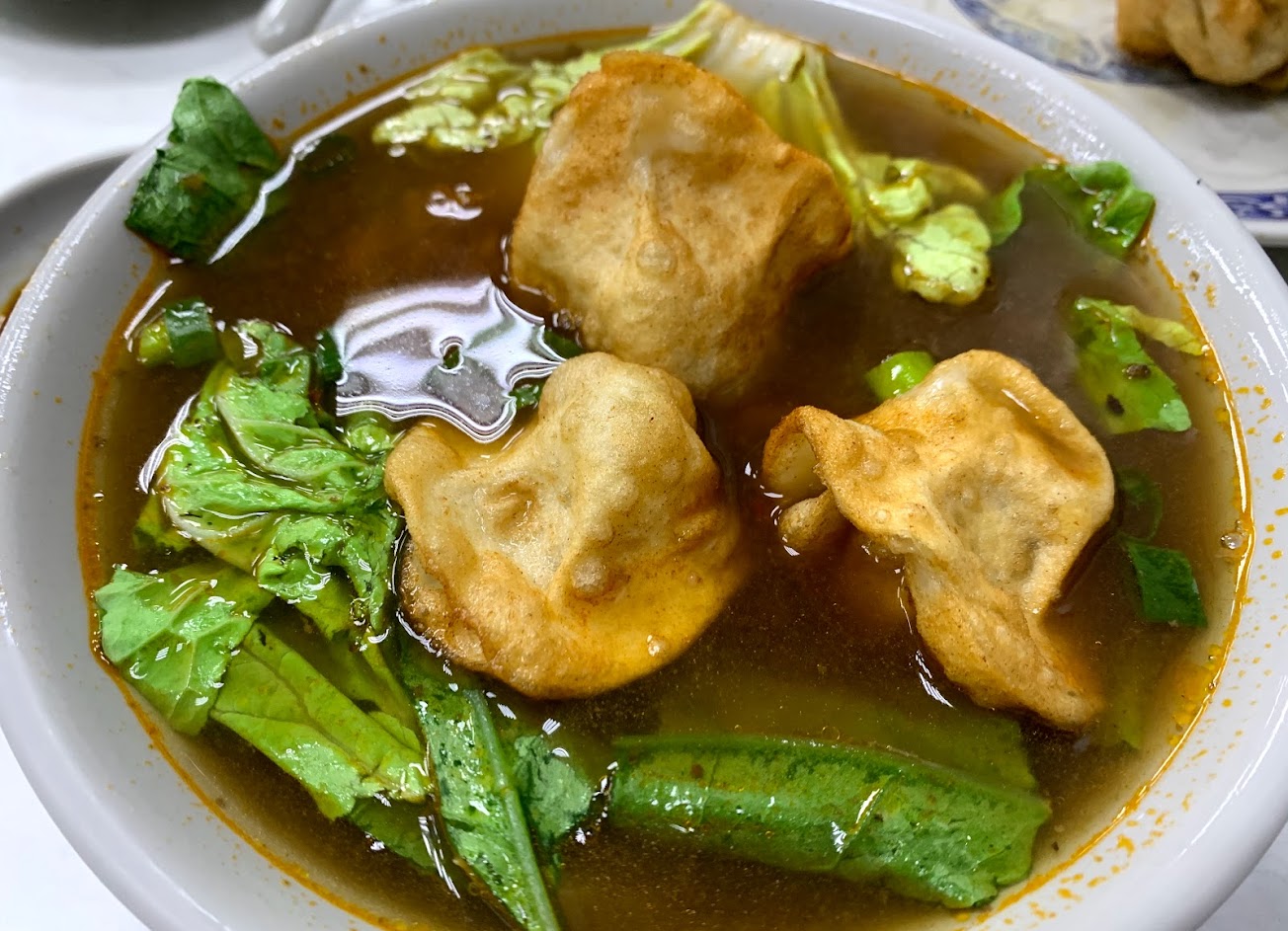 「牛肉湯餃」的湯、水餃皮、餡料味道都是分開的,然後湯頭很奇妙⋯