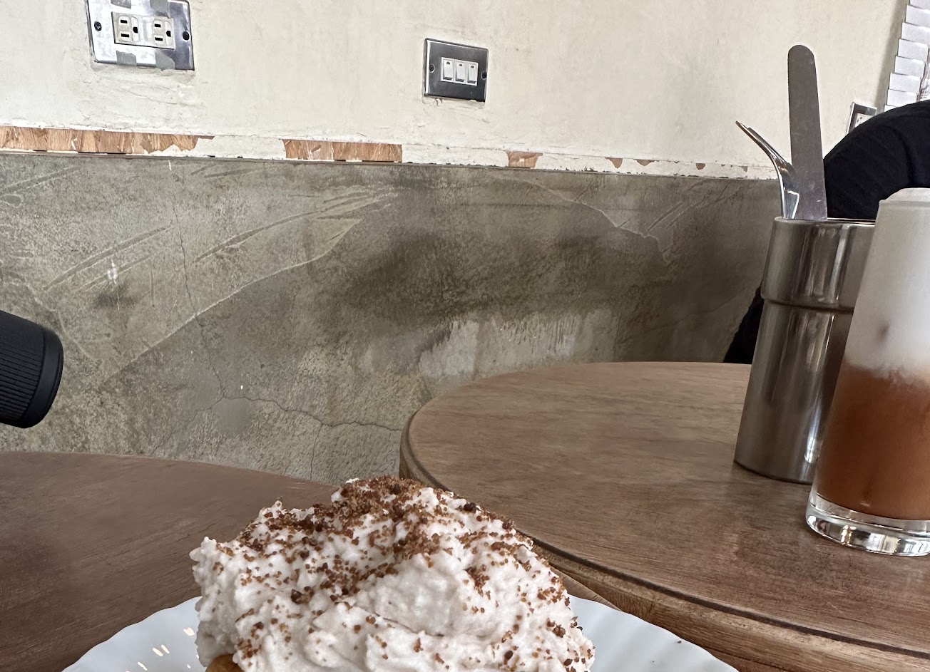 司康上的芋泥很real,淋的毫不手軟,但司康本體有點乾跟硬(還是司康本來口感就是這樣?)朋友吃肉桂捲,表示水準之上,但不到全台灣最強,然後室外小黑蚊瘋多
