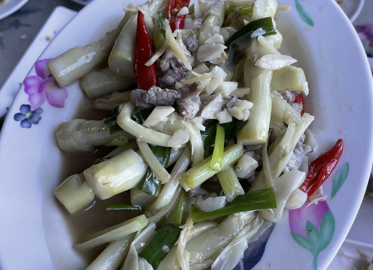 野菜炒的非常好吃(杏菜+蒲公英+大頭根+山茼蒿),連平常不愛吃菜的小孩都一口接一口!烤山豬肉配上蒜末醋,清爽不油膩。海鮮湯麵湯頭清甜好吃!等待最久的烤魚也被大家一掃而空,太好吃了!