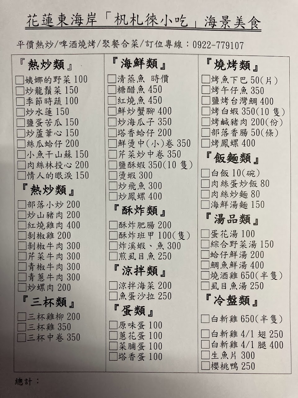 這間味道很可以 有時候海邊的路邊小店還不輸給大餐廳喔!要吃烤魚的話可以先提早打給老闆,而且人太多的時候老闆娘還會有點不開心,而且你吃太快老闆娘還會很緊張,老闆則是在廚房忙著,整個很原住民的招待風格,很有趣的老闆娘,聽海的聲音享受著餐點,整個很享受!