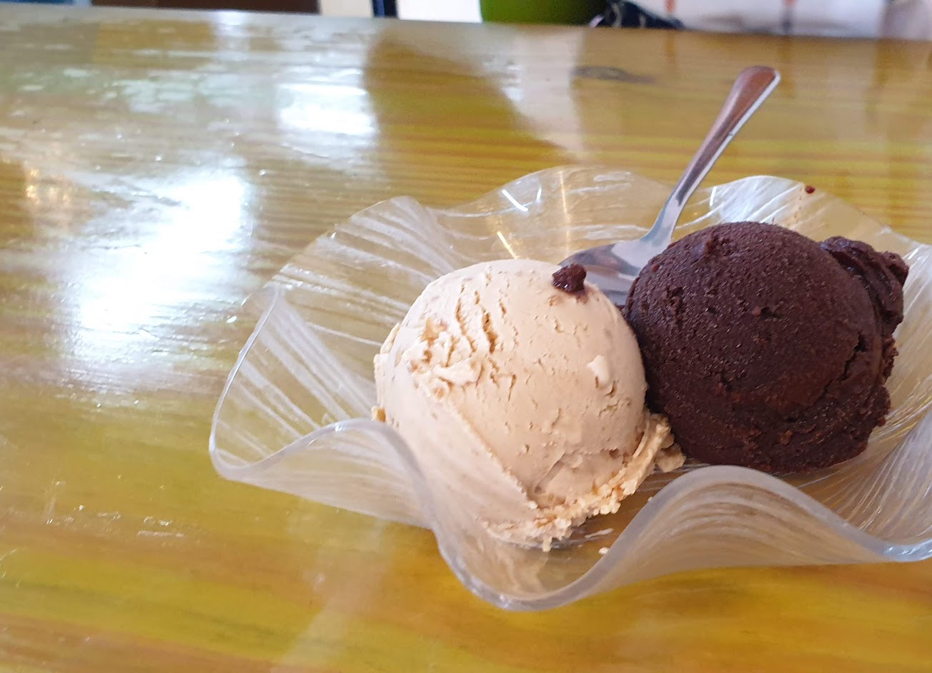 花生冰淇淋卻像是在吃有顆粒的花生醬,芒果冰淇淋像在吃芒果,有天然的感覺,不得我心但是值得推薦