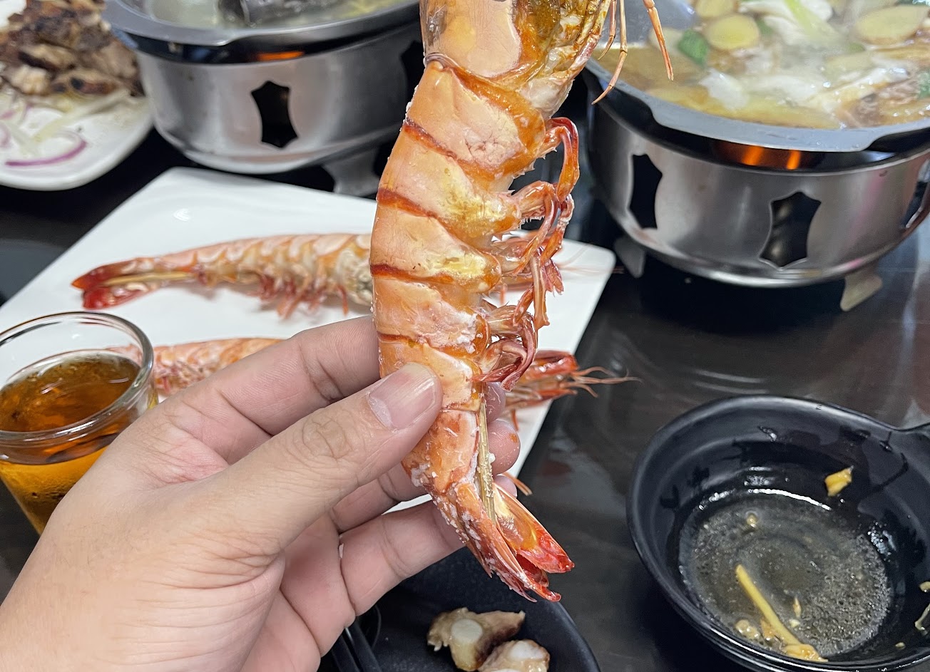 東西是不錯吃,山豬肉蠻推,蝦子有點小貴,只是可能颱風沒有生魚片