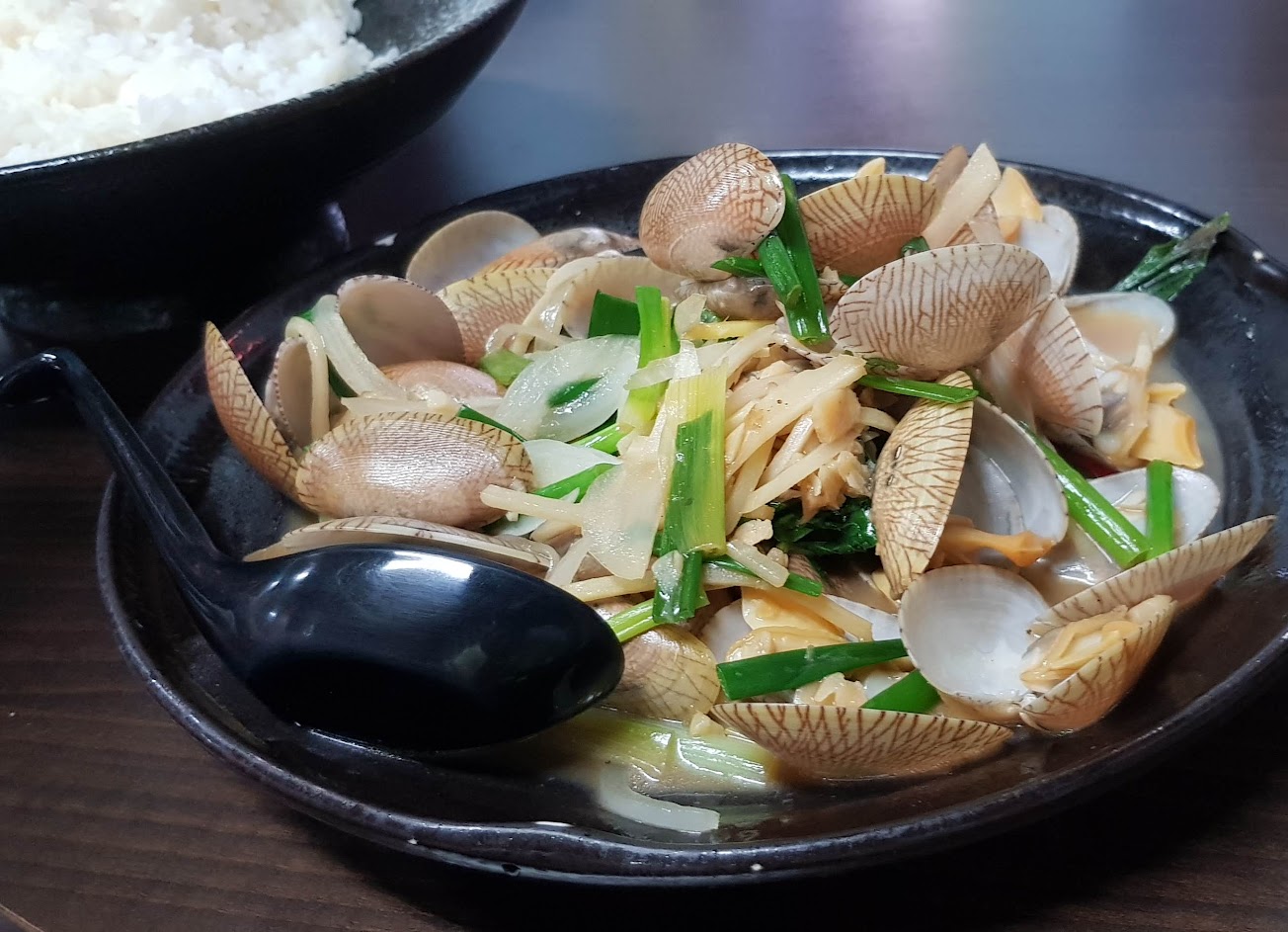 點炒蛤蜊,老闆作成絲瓜蛤蜊,老闆說不好意思做錯了又再炒一盤給我們,太佛了,一家人吃的痕開心,下次還會再來