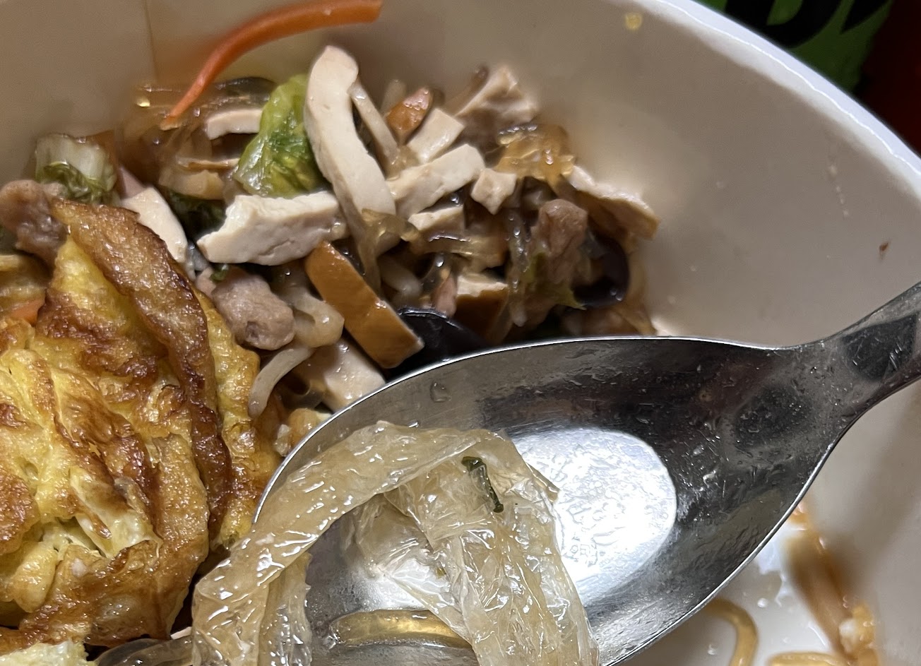 餐點是好吃的,但這個合菜戴帽吃到一半竟然吃到塑膠袋,蠻噁的還高溫加熱過