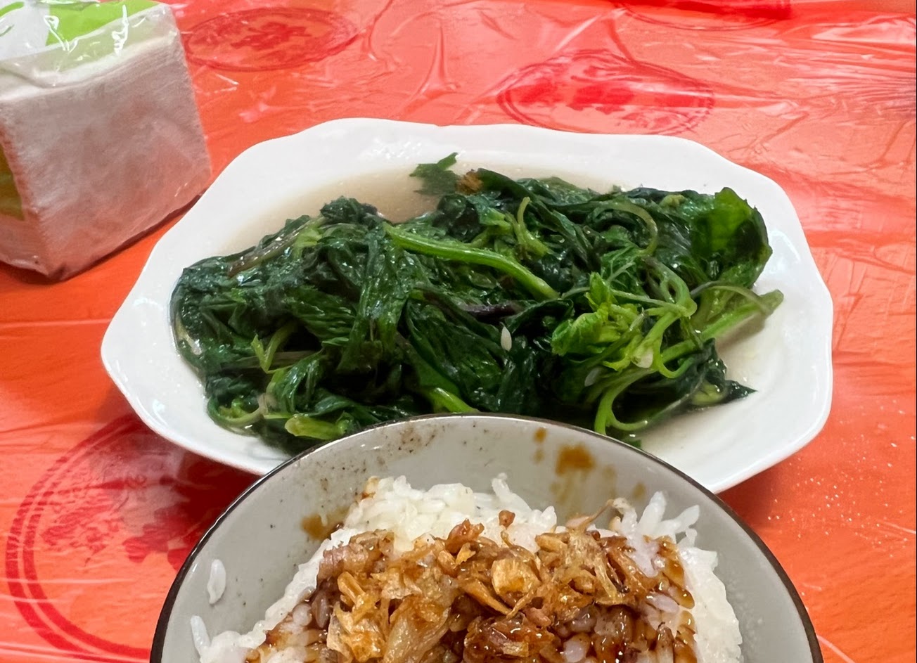 炒水蓮的份量大概是台北同價格的兩三倍,感覺也是有用雞油拌炒,香噴噴好吃?他們的招牌烤雞也很推,皮是脆的喔!沾點雞油和胡椒,好吃沒話說!