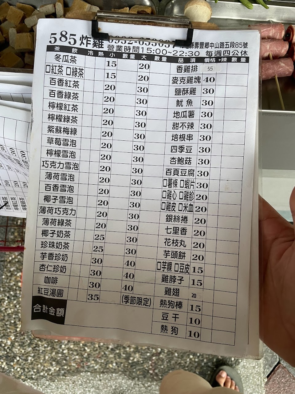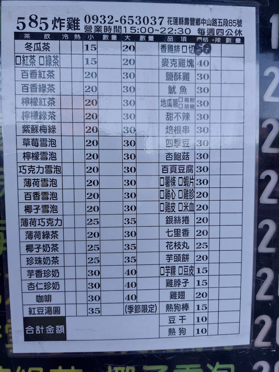 原是鳳林夜市的排隊小吃,在壽豐加油站對面成立實體店面,物美價廉,有炸雞翅,也有手搖飲料,可以一次買足;老闆人很親切,服務好,週四公休!可以先打電話預約,才不會等太久。