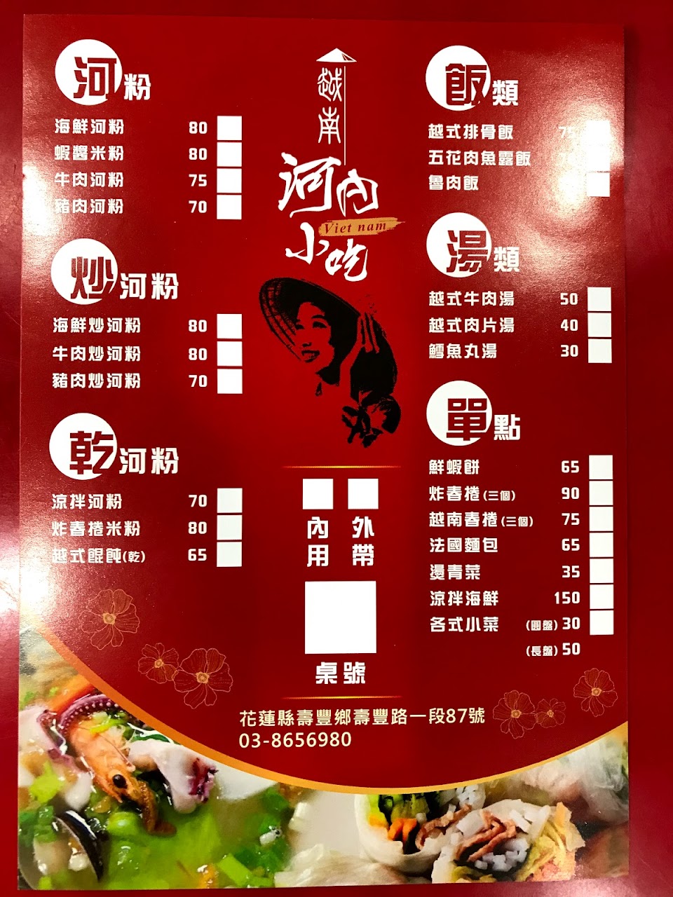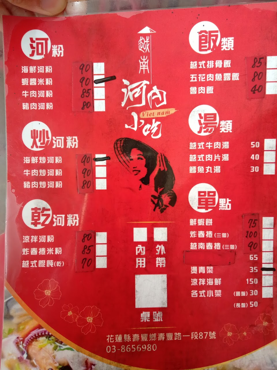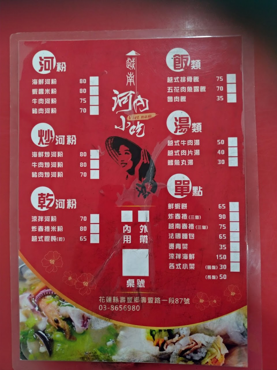 吃完後有與老闆確認了餐點,店內有提供素炒河粉以及河粉湯,不管什麼素都可以詢問看看老闆老闆娘,他們人很好,謝謝老闆老闆娘,下次來壽豐又多一個店可以吃了??