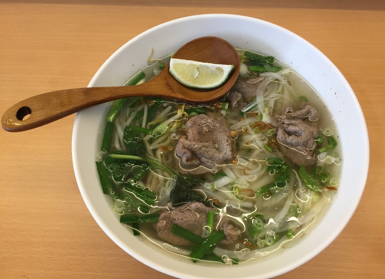 河粉湯頭不錯(可惜肉老了點),附的檸檬很特別,春捲新鮮好吃,整體口味偏淡。老闆跟老闆娘很親切,用餐環境乾淨舒適還有兒童座椅,帶孩子用餐方便。