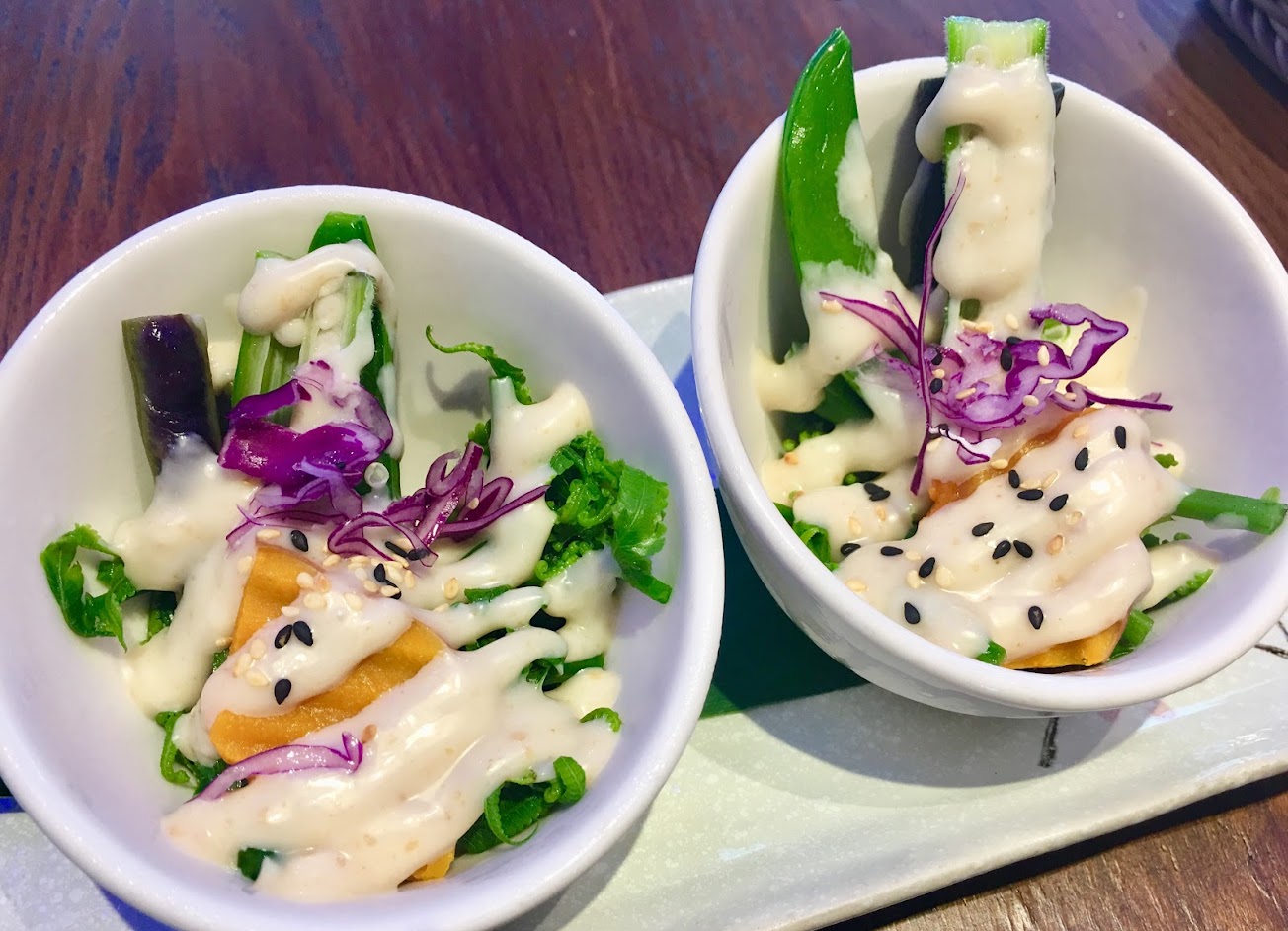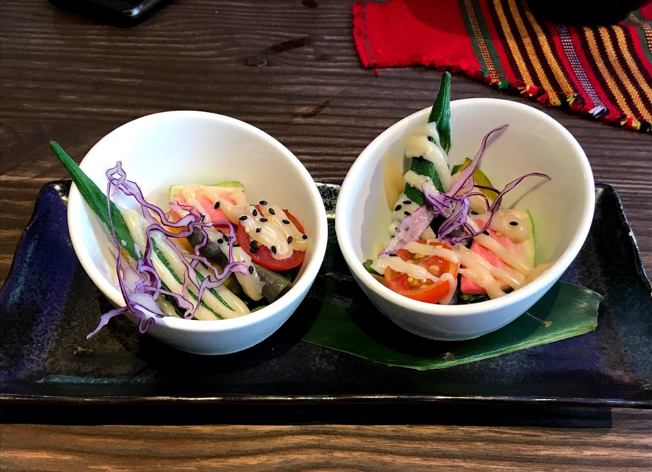 蔬菜捲有芥末子,帶著嗆辣的口味