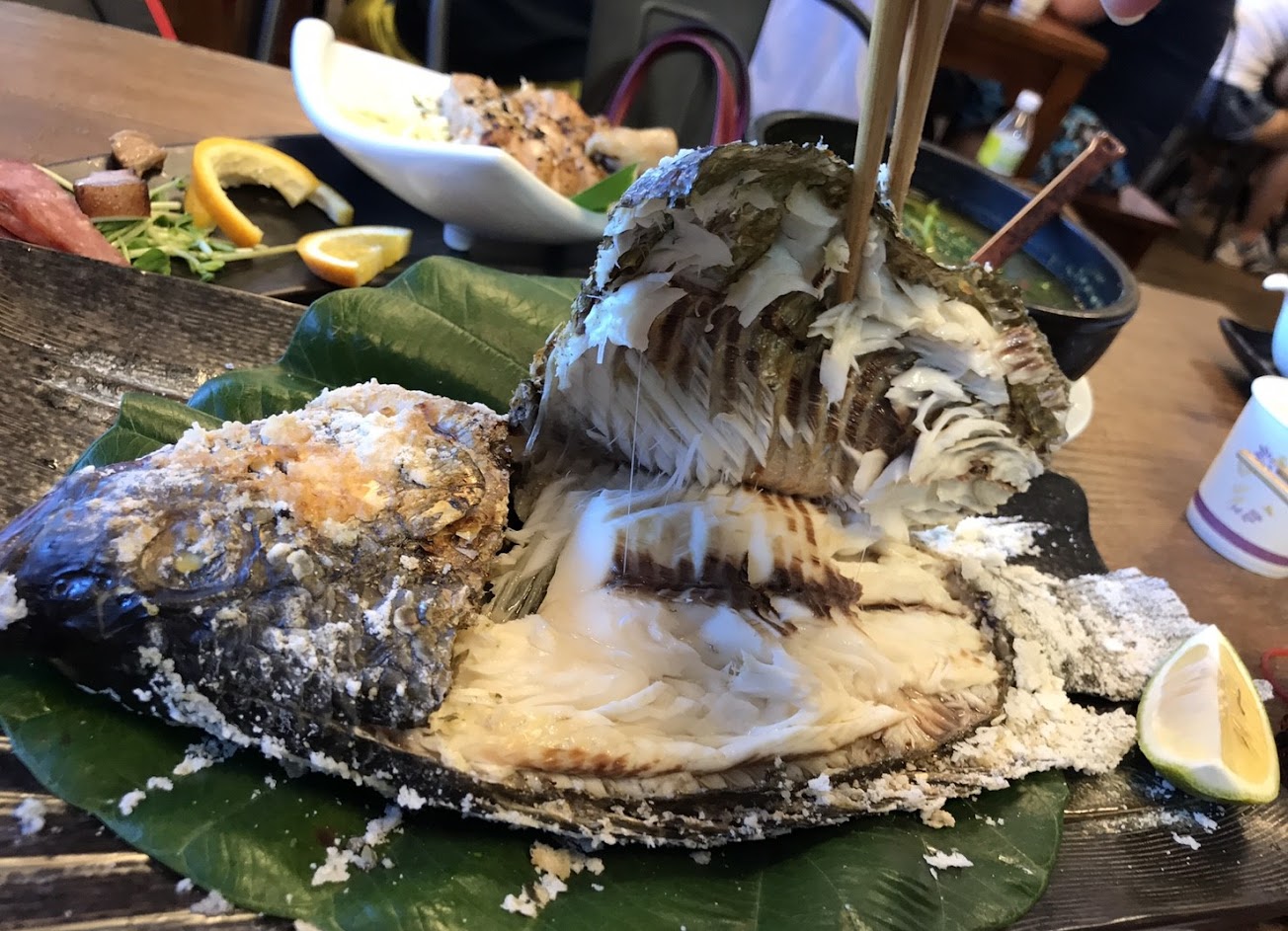 飲料、生魚片、生菜沙拉、野菜湯上菜時太餓了,來不及拍照。除了鹹豬肉之外都好美味喔!尤其是烤魚,好吃到要飆淚。難怪網路評價那麼好。棒棒值得嘉獎。