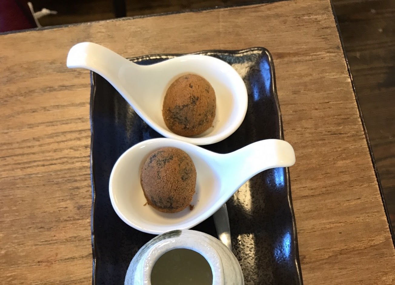 連續假期加價100元,菜色跟550差一點,座位排在敲竹筒飯前,震得耳膜受不了!等了一下才來前菜,少到只能塞牙縫,飯比竹筒飯好吃,調味後的小米酒不錯,生魚片是結冰的!