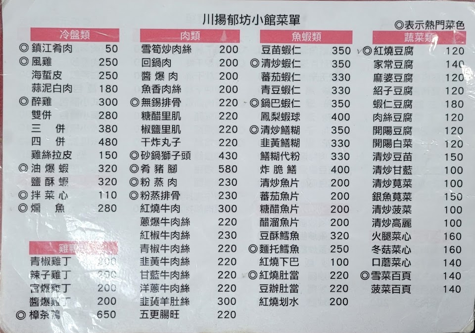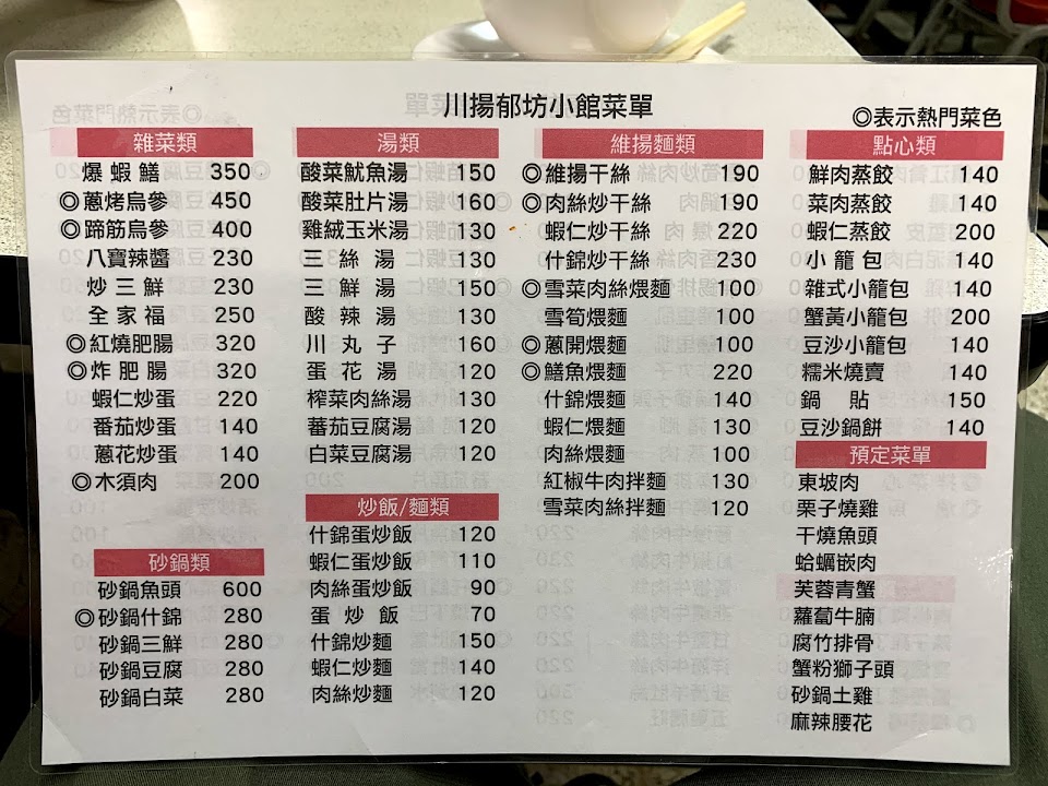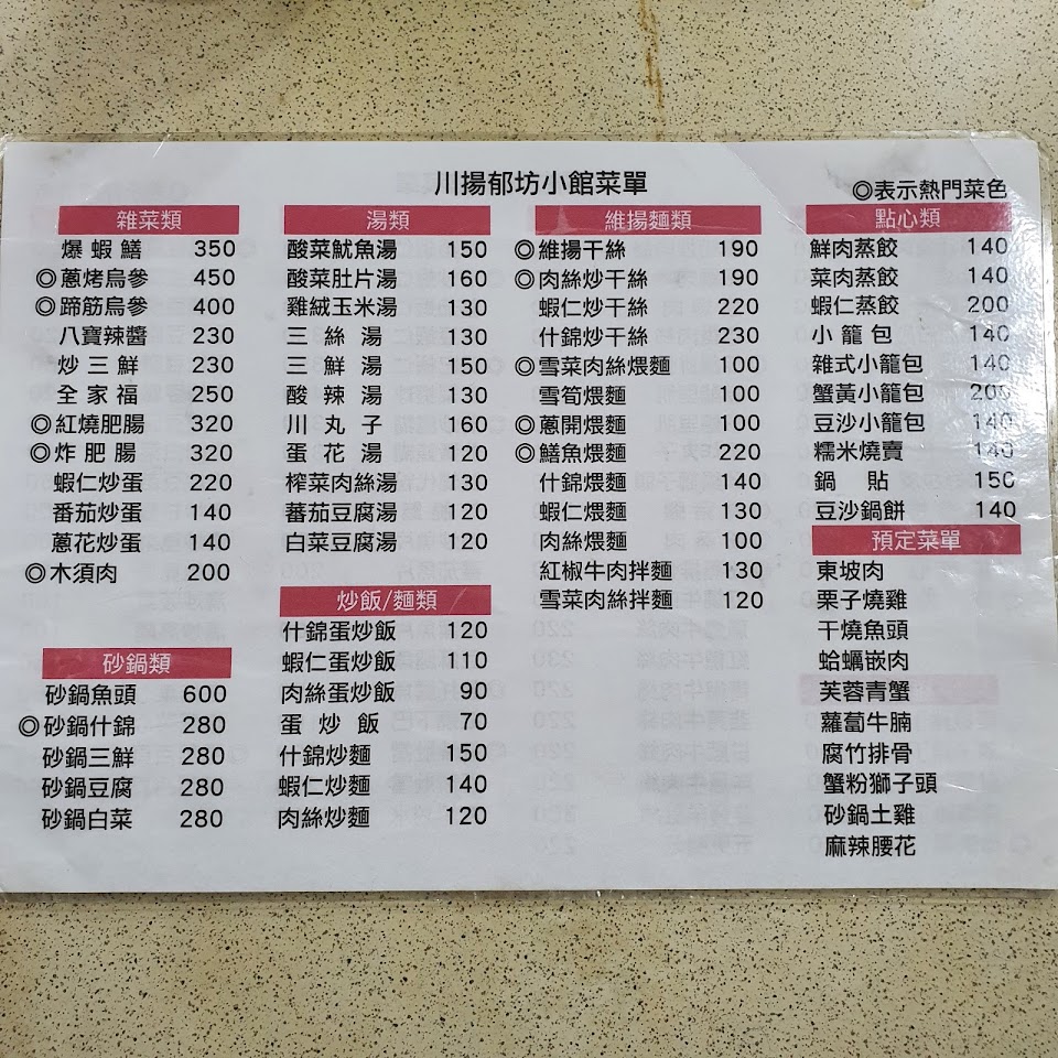2024最新在地推薦餐廳的菜單_川揚郁坊小館的菜單、圖片