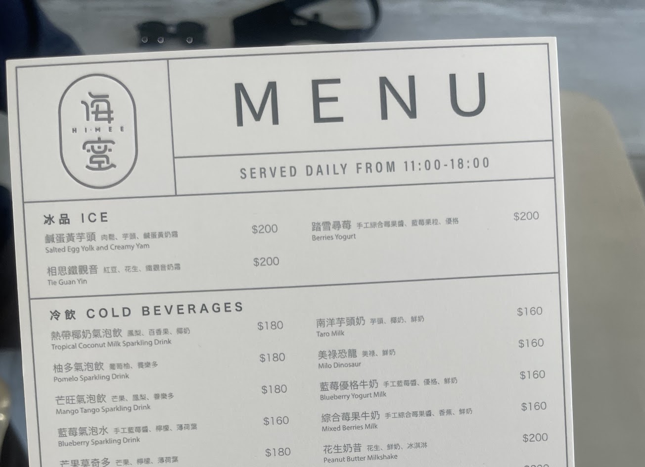 好吃的要命 先淺淺的挖一點冰 糖水狠狠佔領了整個表面積喔甜的好清爽 湯匙鑿下去第一口就有料 再往裡面挖更是金山銀山 每個口味的定位都很清楚 奶霜功不可沒 – #鹹蛋黃芋頭 店內招牌,令人無法忽視的那一撮肉鬆 #烏龍杏花村 愛杏仁之人不能錯過 #栗子蜜地瓜 季節限定,🤎🧡 – 兩杯飲料是美祿恐龍跟柚多氣泡🫧 柚多是養樂多跟葡萄柚,捲愛到不行 店家有低消(冰品/飲品)的規定 人家有規定就是給我好好遵守 覺得不合理你就不要去消費! – 行前妹就有貼這間冰店給我參考 點開地標一堆穿著跟店面超違和的瞎妹奶妹 (她們去其他景點也都穿那樣無參考價值) 原本沒有很放在心上 實際踩點後發現 店內裝潢美的冷冰冰,店員都很友善 重點是冰很好吃(!)再次呼籲 不清楚平常候位情況如何 沒有排隊就得到內用四大三小的位子 我真的只想歡呼慶祝 (●’ᴗ’σ)σணღ*